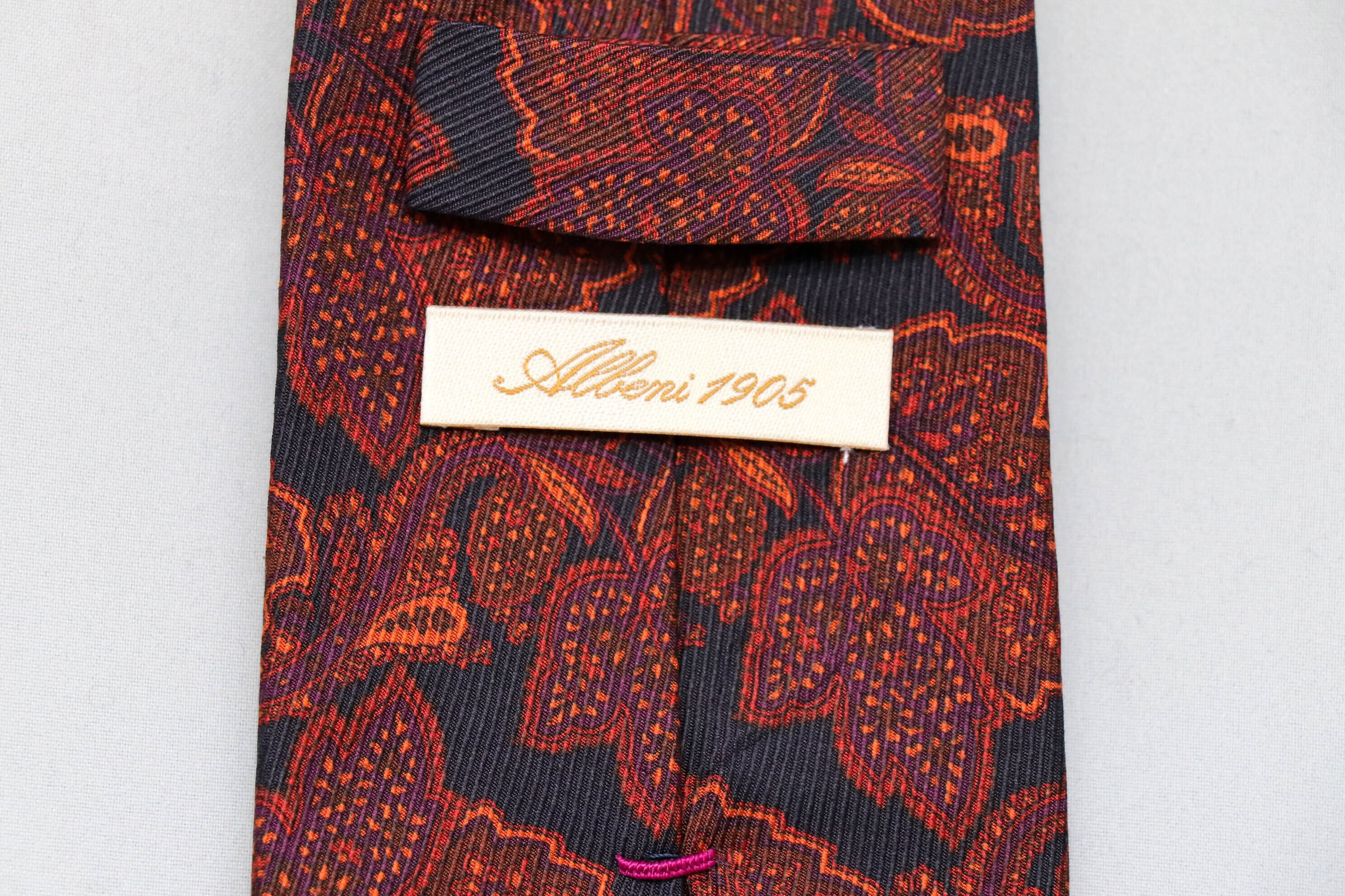 アルベニ 1905のタイは、コモ、ビエッラ産の上質な生地を使い、アルティジャンのハンドワークで1本ずつ仕上げられており、滑らかな質感、しっかりとした締め心地が特徴的です。
