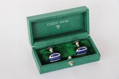 旧式機械と手作業でベースを作り、手描きのデザインに熟練職人が一つずつ丁寧なエナメル加工を施して完成する美しいカフリンクスは世界的な名声を得てきました。