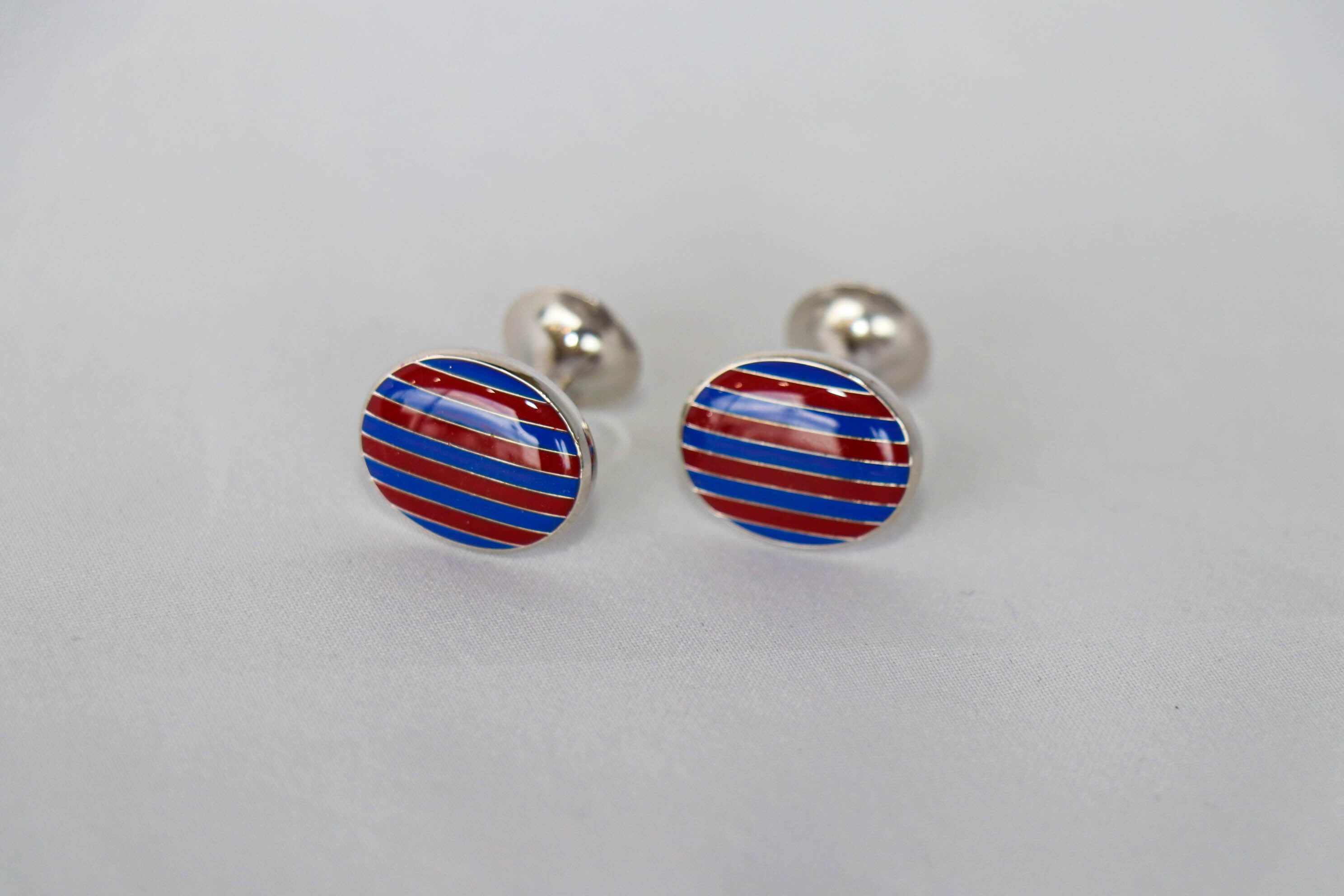 旧式機械と手作業でベースを作り、手描きのデザインに熟練職人が一つずつ丁寧なエナメル加工を施して完成する美しいカフリンクスは世界的な名声を得てきました。