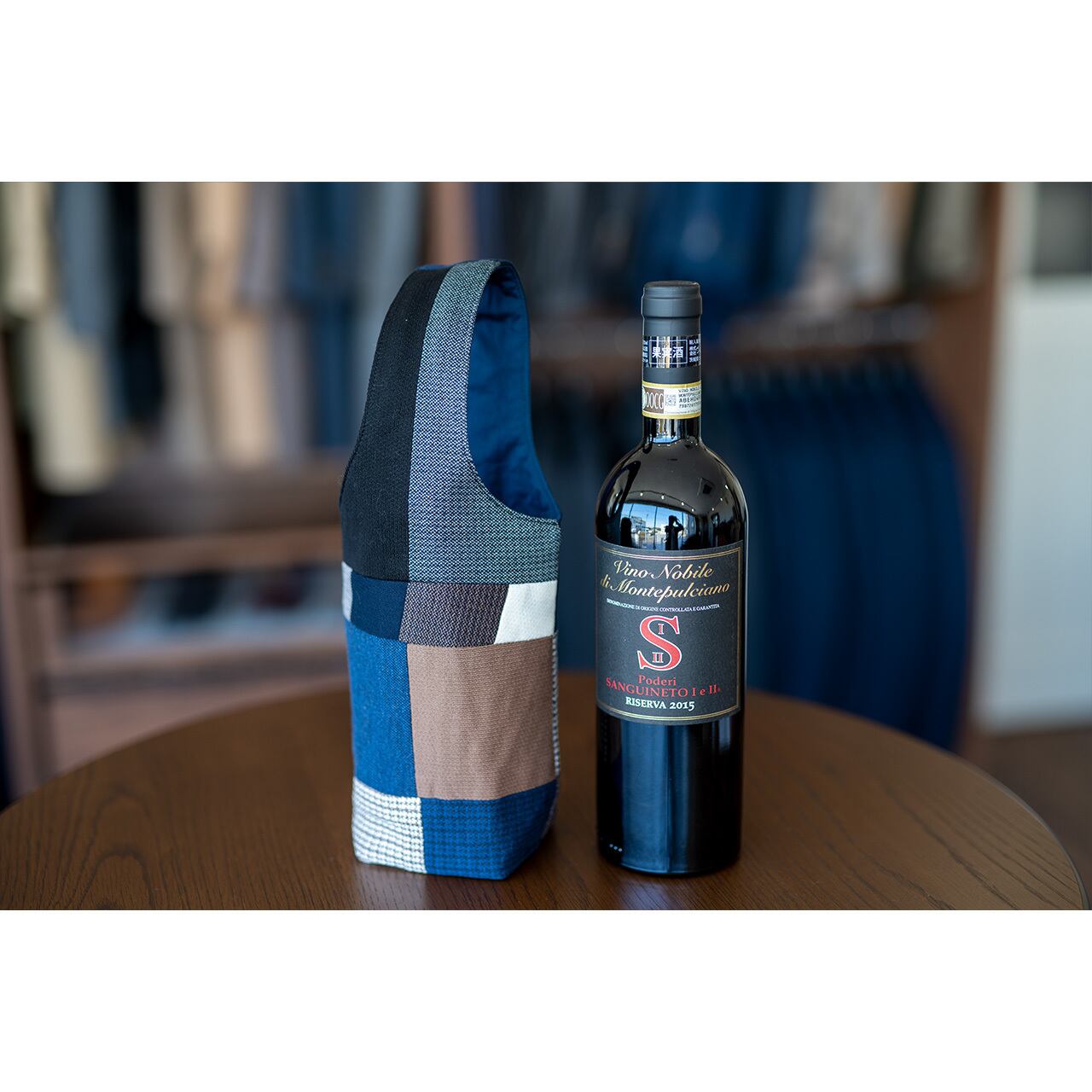 トップメゾンが挙って愛用するメーカー【DONDI(現在はZegna)】の生地でできたパッチワーク調のワインバッグ。おしゃれなデザインで、ワインボトルを持ち運びするのがもっと楽しくなります。不要となったサンプルの布地を使用して仕上げている一点ものです。